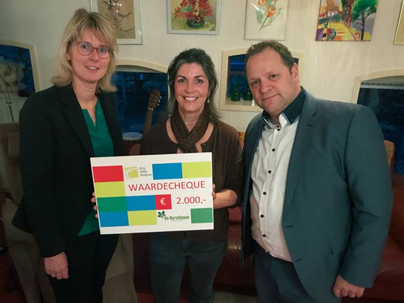 Wie goed doet, goed ontmoet! Op de valreep van 2019 hebben Paul Maas en Angelique Nijhof namens de leden van Kring Raalter Werkgevers een cheque van € 2000,- uitgereikt aan De Horsthoeve.